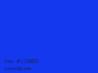 Hex #1338ed Color is a normal blue color and the nearest color is Palatinate Blue #273be2. Hex code #1338ed and RGB value is rgb(19,56,237). In RGB color space, this color is composed of 7% red, 22% green, 93% blue, In CMYK color space, this color is composed of 92% cyan, 76% magenta, 0% yellow , 7% black , In HSL color space, this color has a hue angle of 230° , 86% saturation and 50% lightness.