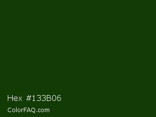 Hex #133b06 Color is a very dark green color and the nearest color is Palm Leaf #19330e. Hex code #133b06 and RGB value is rgb(19,59,6). In RGB color space, this color is composed of 7% red, 23% green, 2% blue, In CMYK color space, this color is composed of 68% cyan, 0% magenta, 90% yellow , 77% black , In HSL color space, this color has a hue angle of 105° , 82% saturation and 13% lightness.