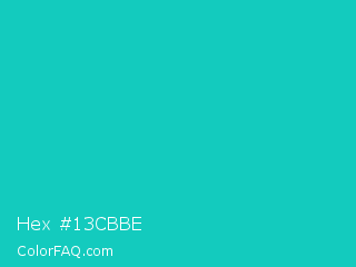 Hex #13cbbe Color is a normal cyan color and the nearest color is Java #1fc2c2. Hex code #13cbbe and RGB value is rgb(19,203,190). In RGB color space, this color is composed of 7% red, 80% green, 75% blue, In CMYK color space, this color is composed of 91% cyan, 0% magenta, 6% yellow , 20% black , In HSL color space, this color has a hue angle of 176° , 83% saturation and 44% lightness.