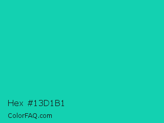 Hex #13d1b1 Color is a normal cyan color and the nearest color is Amazonite #00c4b0. Hex code #13d1b1 and RGB value is rgb(19,209,177). In RGB color space, this color is composed of 7% red, 82% green, 69% blue, In CMYK color space, this color is composed of 91% cyan, 0% magenta, 15% yellow , 18% black , In HSL color space, this color has a hue angle of 170° , 83% saturation and 45% lightness.