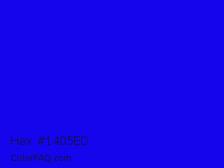 Hex #1405ed Color is a normal indigo color and the nearest color is Bluebonnet #1c1cf0. Hex code #1405ed and RGB value is rgb(20,5,237). In RGB color space, this color is composed of 8% red, 2% green, 93% blue, In CMYK color space, this color is composed of 92% cyan, 98% magenta, 0% yellow , 7% black , In HSL color space, this color has a hue angle of 244° , 96% saturation and 47% lightness.