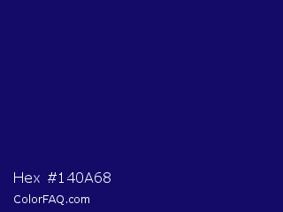 Hex #140a68 Color is a very dark indigo color and the nearest color is Arapawa #110c6c. Hex code #140a68 and RGB value is rgb(20,10,104). In RGB color space, this color is composed of 8% red, 4% green, 41% blue, In CMYK color space, this color is composed of 81% cyan, 90% magenta, 0% yellow , 59% black , In HSL color space, this color has a hue angle of 246° , 82% saturation and 22% lightness.