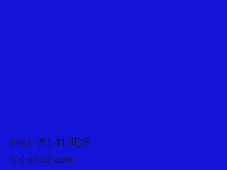 Hex #1414d8 Color is a normal blue color and the nearest color is Bluebonnet #1c1cf0. Hex code #1414d8 and RGB value is rgb(20,20,216). In RGB color space, this color is composed of 8% red, 8% green, 85% blue, In CMYK color space, this color is composed of 91% cyan, 91% magenta, 0% yellow , 15% black , In HSL color space, this color has a hue angle of 240° , 83% saturation and 46% lightness.