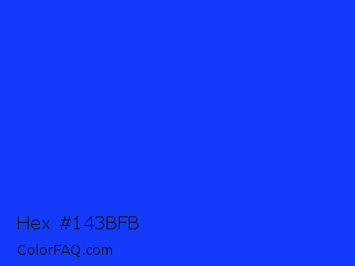 Hex #143bfb Color is a normal blue color and the nearest color is Blue RYB #0247fe. Hex code #143bfb and RGB value is rgb(20,59,251). In RGB color space, this color is composed of 8% red, 23% green, 98% blue, In CMYK color space, this color is composed of 92% cyan, 76% magenta, 0% yellow , 2% black , In HSL color space, this color has a hue angle of 230° , 97% saturation and 53% lightness.