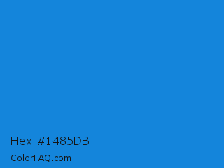 Hex #1485db Color is a normal blue color and the nearest color is Bright Navy Blue #1974d2. Hex code #1485db and RGB value is rgb(20,133,219). In RGB color space, this color is composed of 8% red, 52% green, 86% blue, In CMYK color space, this color is composed of 91% cyan, 39% magenta, 0% yellow , 14% black , In HSL color space, this color has a hue angle of 206° , 83% saturation and 47% lightness.