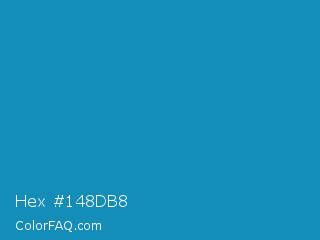 Hex #148db8 Color is a normal blue color and the nearest color is Cyan Cornflower Blue #188bc2. Hex code #148db8 and RGB value is rgb(20,141,184). In RGB color space, this color is composed of 8% red, 55% green, 72% blue, In CMYK color space, this color is composed of 89% cyan, 23% magenta, 0% yellow , 28% black , In HSL color space, this color has a hue angle of 196° , 80% saturation and 40% lightness.