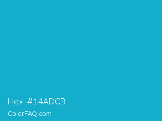 Hex #14adcb Color is a normal cyan color and the nearest color is Pacific Blue #1ca9c9. Hex code #14adcb and RGB value is rgb(20,173,203). In RGB color space, this color is composed of 8% red, 68% green, 80% blue, In CMYK color space, this color is composed of 90% cyan, 15% magenta, 0% yellow , 20% black , In HSL color space, this color has a hue angle of 190° , 82% saturation and 44% lightness.