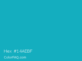 Hex #14aebf Color is a normal cyan color and the nearest color is Pacific Blue #1ca9c9. Hex code #14aebf and RGB value is rgb(20,174,191). In RGB color space, this color is composed of 8% red, 68% green, 75% blue, In CMYK color space, this color is composed of 90% cyan, 9% magenta, 0% yellow , 25% black , In HSL color space, this color has a hue angle of 186° , 81% saturation and 41% lightness.