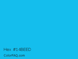 Hex #14beed Color is a normal cyan color and the nearest color is Spiro Disco Ball #0fc0fc. Hex code #14beed and RGB value is rgb(20,190,237). In RGB color space, this color is composed of 8% red, 75% green, 93% blue, In CMYK color space, this color is composed of 92% cyan, 20% magenta, 0% yellow , 7% black , In HSL color space, this color has a hue angle of 193° , 86% saturation and 50% lightness.