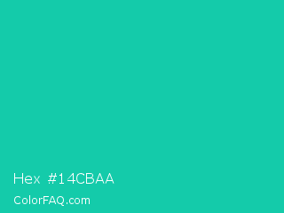 Hex #14cbaa Color is a normal cyan color and the nearest color is Amazonite #00c4b0. Hex code #14cbaa and RGB value is rgb(20,203,170). In RGB color space, this color is composed of 8% red, 80% green, 67% blue, In CMYK color space, this color is composed of 90% cyan, 0% magenta, 16% yellow , 20% black , In HSL color space, this color has a hue angle of 169° , 82% saturation and 44% lightness.