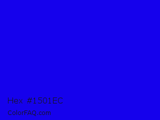 Hex #1501ec Color is a normal indigo color and the nearest color is Bluebonnet #1c1cf0. Hex code #1501ec and RGB value is rgb(21,1,236). In RGB color space, this color is composed of 8% red, 0% green, 93% blue, In CMYK color space, this color is composed of 91% cyan, 100% magenta, 0% yellow , 7% black , In HSL color space, this color has a hue angle of 245° , 99% saturation and 46% lightness.