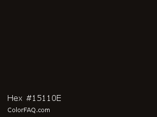 Hex #15110e Color is a almost black orange color and the nearest color is Licorice #1a1110. Hex code #15110e and RGB value is rgb(21,17,14). In RGB color space, this color is composed of 8% red, 7% green, 5% blue, In CMYK color space, this color is composed of 0% cyan, 19% magenta, 33% yellow , 92% black , In HSL color space, this color has a hue angle of 26° , 20% saturation and 7% lightness.