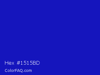 Hex #1515bd Color is a normal blue color and the nearest color is Zaffre #0014a8. Hex code #1515bd and RGB value is rgb(21,21,189). In RGB color space, this color is composed of 8% red, 8% green, 74% blue, In CMYK color space, this color is composed of 89% cyan, 89% magenta, 0% yellow , 26% black , In HSL color space, this color has a hue angle of 240° , 80% saturation and 41% lightness.