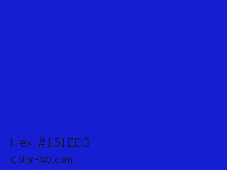 Hex #151ed3 Color is a normal blue color and the nearest color is Bluebonnet #1c1cf0. Hex code #151ed3 and RGB value is rgb(21,30,211). In RGB color space, this color is composed of 8% red, 12% green, 83% blue, In CMYK color space, this color is composed of 90% cyan, 86% magenta, 0% yellow , 17% black , In HSL color space, this color has a hue angle of 237° , 82% saturation and 45% lightness.