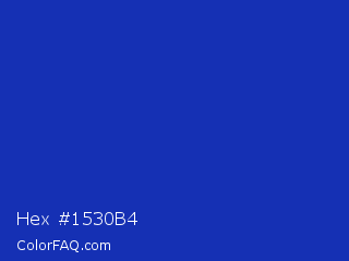 Hex #1530b4 Color is a normal blue color and the nearest color is Persian Blue #1c39bb. Hex code #1530b4 and RGB value is rgb(21,48,180). In RGB color space, this color is composed of 8% red, 19% green, 71% blue, In CMYK color space, this color is composed of 88% cyan, 73% magenta, 0% yellow , 29% black , In HSL color space, this color has a hue angle of 230° , 79% saturation and 39% lightness.