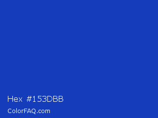 Hex #153dbb Color is a normal blue color and the nearest color is Persian Blue #1c39bb. Hex code #153dbb and RGB value is rgb(21,61,187). In RGB color space, this color is composed of 8% red, 24% green, 73% blue, In CMYK color space, this color is composed of 89% cyan, 67% magenta, 0% yellow , 27% black , In HSL color space, this color has a hue angle of 226° , 80% saturation and 41% lightness.