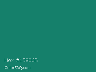 Hex #15806b Color is a dark cyan color and the nearest color is Deep Green Cyan Turquoise #0e7c61. Hex code #15806b and RGB value is rgb(21,128,107). In RGB color space, this color is composed of 8% red, 50% green, 42% blue, In CMYK color space, this color is composed of 84% cyan, 0% magenta, 16% yellow , 50% black , In HSL color space, this color has a hue angle of 168° , 72% saturation and 29% lightness.