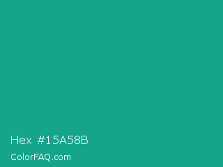 Hex #15a58b Color is a normal cyan color and the nearest color is Niagara #06a189. Hex code #15a58b and RGB value is rgb(21,165,139). In RGB color space, this color is composed of 8% red, 65% green, 55% blue, In CMYK color space, this color is composed of 87% cyan, 0% magenta, 16% yellow , 35% black , In HSL color space, this color has a hue angle of 169° , 77% saturation and 36% lightness.