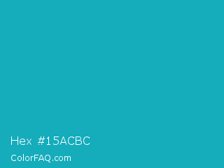 Hex #15acbc Color is a normal cyan color and the nearest color is Pacific Blue #1ca9c9. Hex code #15acbc and RGB value is rgb(21,172,188). In RGB color space, this color is composed of 8% red, 67% green, 74% blue, In CMYK color space, this color is composed of 89% cyan, 9% magenta, 0% yellow , 26% black , In HSL color space, this color has a hue angle of 186° , 80% saturation and 41% lightness.