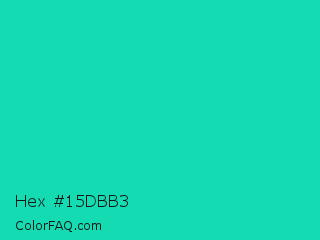 Hex #15dbb3 Color is a normal cyan color and the nearest color is Java #1fc2c2. Hex code #15dbb3 and RGB value is rgb(21,219,179). In RGB color space, this color is composed of 8% red, 86% green, 70% blue, In CMYK color space, this color is composed of 90% cyan, 0% magenta, 18% yellow , 14% black , In HSL color space, this color has a hue angle of 168° , 83% saturation and 47% lightness.