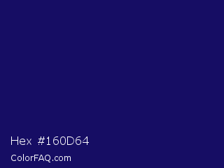 Hex #160d64 Color is a very dark indigo color and the nearest color is Arapawa #110c6c. Hex code #160d64 and RGB value is rgb(22,13,100). In RGB color space, this color is composed of 9% red, 5% green, 39% blue, In CMYK color space, this color is composed of 78% cyan, 87% magenta, 0% yellow , 61% black , In HSL color space, this color has a hue angle of 246° , 77% saturation and 22% lightness.