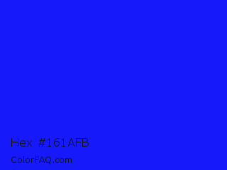 Hex #161afb Color is a normal blue color and the nearest color is Bluebonnet #1c1cf0. Hex code #161afb and RGB value is rgb(22,26,251). In RGB color space, this color is composed of 9% red, 10% green, 98% blue, In CMYK color space, this color is composed of 91% cyan, 90% magenta, 0% yellow , 2% black , In HSL color space, this color has a hue angle of 239° , 97% saturation and 54% lightness.