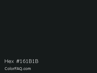 Hex #161b1b Color is a very dark cyan color and the nearest color is Eerie Black #1b1b1b. Hex code #161b1b and RGB value is rgb(22,27,27). In RGB color space, this color is composed of 9% red, 11% green, 11% blue, In CMYK color space, this color is composed of 19% cyan, 0% magenta, 0% yellow , 89% black , In HSL color space, this color has a hue angle of 180° , 10% saturation and 10% lightness.