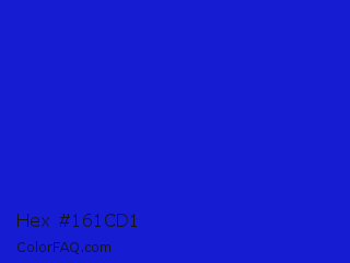 Hex #161cd1 Color is a normal blue color and the nearest color is Bluebonnet #1c1cf0. Hex code #161cd1 and RGB value is rgb(22,28,209). In RGB color space, this color is composed of 9% red, 11% green, 82% blue, In CMYK color space, this color is composed of 89% cyan, 87% magenta, 0% yellow , 18% black , In HSL color space, this color has a hue angle of 238° , 81% saturation and 45% lightness.