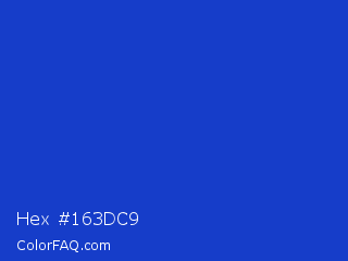 Hex #163dc9 Color is a normal blue color and the nearest color is Persian Blue #1c39bb. Hex code #163dc9 and RGB value is rgb(22,61,201). In RGB color space, this color is composed of 9% red, 24% green, 79% blue, In CMYK color space, this color is composed of 89% cyan, 70% magenta, 0% yellow , 21% black , In HSL color space, this color has a hue angle of 227° , 80% saturation and 44% lightness.