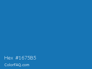 Hex #1675b5 Color is a normal blue color and the nearest color is Green Blue #1164b4. Hex code #1675b5 and RGB value is rgb(22,117,181). In RGB color space, this color is composed of 9% red, 46% green, 71% blue, In CMYK color space, this color is composed of 88% cyan, 35% magenta, 0% yellow , 29% black , In HSL color space, this color has a hue angle of 204° , 78% saturation and 40% lightness.