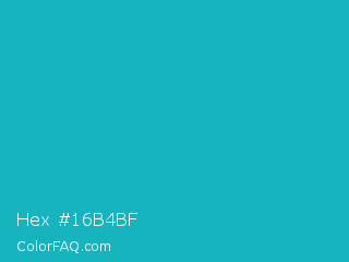 Hex #16b4bf Color is a normal cyan color and the nearest color is Pacific Blue #1ca9c9. Hex code #16b4bf and RGB value is rgb(22,180,191). In RGB color space, this color is composed of 9% red, 71% green, 75% blue, In CMYK color space, this color is composed of 88% cyan, 6% magenta, 0% yellow , 25% black , In HSL color space, this color has a hue angle of 184° , 79% saturation and 42% lightness.