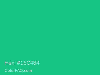 Hex #16c484 Color is a normal green color and the nearest color is Mountain Meadow Crayola #1ab385. Hex code #16c484 and RGB value is rgb(22,196,132). In RGB color space, this color is composed of 9% red, 77% green, 52% blue, In CMYK color space, this color is composed of 89% cyan, 0% magenta, 33% yellow , 23% black , In HSL color space, this color has a hue angle of 158° , 80% saturation and 43% lightness.