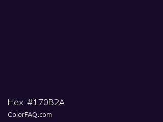 Hex #170b2a Color is a very dark violet color and the nearest color is Haiti #1b1035. Hex code #170b2a and RGB value is rgb(23,11,42). In RGB color space, this color is composed of 9% red, 4% green, 16% blue, In CMYK color space, this color is composed of 45% cyan, 74% magenta, 0% yellow , 84% black , In HSL color space, this color has a hue angle of 263° , 58% saturation and 10% lightness.