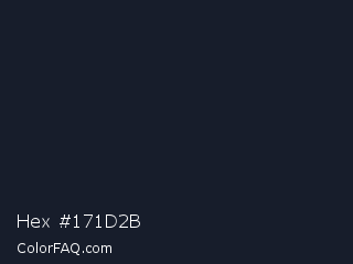 Hex #171d2b Color is a very dark blue color and the nearest color is Mirage #161928. Hex code #171d2b and RGB value is rgb(23,29,43). In RGB color space, this color is composed of 9% red, 11% green, 17% blue, In CMYK color space, this color is composed of 47% cyan, 33% magenta, 0% yellow , 83% black , In HSL color space, this color has a hue angle of 222° , 30% saturation and 13% lightness.