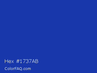 Hex #1737ab Color is a normal blue color and the nearest color is Egyptian Blue #1034a6. Hex code #1737ab and RGB value is rgb(23,55,171). In RGB color space, this color is composed of 9% red, 22% green, 67% blue, In CMYK color space, this color is composed of 87% cyan, 68% magenta, 0% yellow , 33% black , In HSL color space, this color has a hue angle of 227° , 76% saturation and 38% lightness.