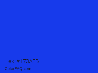 Hex #173aeb Color is a normal blue color and the nearest color is Palatinate Blue #273be2. Hex code #173aeb and RGB value is rgb(23,58,235). In RGB color space, this color is composed of 9% red, 23% green, 92% blue, In CMYK color space, this color is composed of 90% cyan, 75% magenta, 0% yellow , 8% black , In HSL color space, this color has a hue angle of 230° , 84% saturation and 51% lightness.