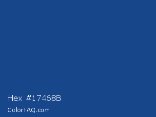 Hex #17468b Color is a normal blue color and the nearest color is Yale Blue #0f4d92. Hex code #17468b and RGB value is rgb(23,70,139). In RGB color space, this color is composed of 9% red, 27% green, 55% blue, In CMYK color space, this color is composed of 83% cyan, 50% magenta, 0% yellow , 45% black , In HSL color space, this color has a hue angle of 216° , 72% saturation and 32% lightness.