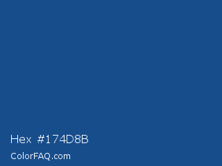 Hex #174d8b Color is a normal blue color and the nearest color is Yale Blue #0f4d92. Hex code #174d8b and RGB value is rgb(23,77,139). In RGB color space, this color is composed of 9% red, 30% green, 55% blue, In CMYK color space, this color is composed of 83% cyan, 45% magenta, 0% yellow , 45% black , In HSL color space, this color has a hue angle of 212° , 72% saturation and 32% lightness.