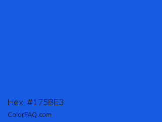 Hex #175be3 Color is a normal blue color and the nearest color is Bright Navy Blue #1974d2. Hex code #175be3 and RGB value is rgb(23,91,227). In RGB color space, this color is composed of 9% red, 36% green, 89% blue, In CMYK color space, this color is composed of 90% cyan, 60% magenta, 0% yellow , 11% black , In HSL color space, this color has a hue angle of 220° , 82% saturation and 49% lightness.