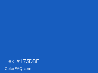 Hex #175dbf Color is a normal blue color and the nearest color is Denim #1560bd. Hex code #175dbf and RGB value is rgb(23,93,191). In RGB color space, this color is composed of 9% red, 36% green, 75% blue, In CMYK color space, this color is composed of 88% cyan, 51% magenta, 0% yellow , 25% black , In HSL color space, this color has a hue angle of 215° , 79% saturation and 42% lightness.