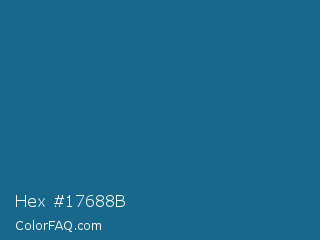 Hex #17688b Color is a normal blue color and the nearest color is Blue Sapphire #126180. Hex code #17688b and RGB value is rgb(23,104,139). In RGB color space, this color is composed of 9% red, 41% green, 55% blue, In CMYK color space, this color is composed of 83% cyan, 25% magenta, 0% yellow , 45% black , In HSL color space, this color has a hue angle of 198° , 72% saturation and 32% lightness.