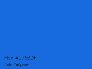 Hex #176bdf Color is a normal blue color and the nearest color is Bright Navy Blue #1974d2. Hex code #176bdf and RGB value is rgb(23,107,223). In RGB color space, this color is composed of 9% red, 42% green, 87% blue, In CMYK color space, this color is composed of 90% cyan, 52% magenta, 0% yellow , 13% black , In HSL color space, this color has a hue angle of 215° , 81% saturation and 48% lightness.