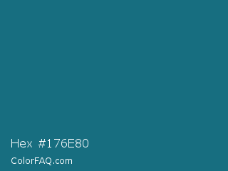 Hex #176e80 Color is a dark cyan color and the nearest color is Blue Sapphire #126180. Hex code #176e80 and RGB value is rgb(23,110,128). In RGB color space, this color is composed of 9% red, 43% green, 50% blue, In CMYK color space, this color is composed of 82% cyan, 14% magenta, 0% yellow , 50% black , In HSL color space, this color has a hue angle of 190° , 70% saturation and 30% lightness.