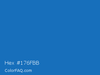 Hex #176fbb Color is a normal blue color and the nearest color is Green Blue #1164b4. Hex code #176fbb and RGB value is rgb(23,111,187). In RGB color space, this color is composed of 9% red, 44% green, 73% blue, In CMYK color space, this color is composed of 88% cyan, 41% magenta, 0% yellow , 27% black , In HSL color space, this color has a hue angle of 208° , 78% saturation and 41% lightness.