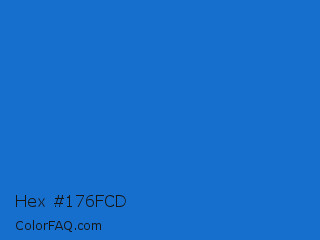 Hex #176fcd Color is a normal blue color and the nearest color is Bright Navy Blue #1974d2. Hex code #176fcd and RGB value is rgb(23,111,205). In RGB color space, this color is composed of 9% red, 44% green, 80% blue, In CMYK color space, this color is composed of 89% cyan, 46% magenta, 0% yellow , 20% black , In HSL color space, this color has a hue angle of 211° , 80% saturation and 45% lightness.