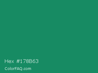 Hex #178b63 Color is a normal green color and the nearest color is Deep Green Cyan Turquoise #0e7c61. Hex code #178b63 and RGB value is rgb(23,139,99). In RGB color space, this color is composed of 9% red, 55% green, 39% blue, In CMYK color space, this color is composed of 83% cyan, 0% magenta, 29% yellow , 45% black , In HSL color space, this color has a hue angle of 159° , 72% saturation and 32% lightness.