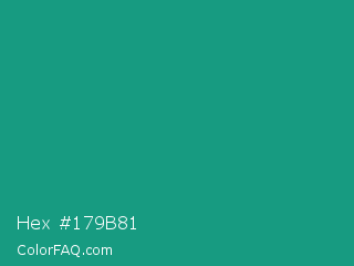 Hex #179b81 Color is a normal cyan color and the nearest color is Gossamer #069b81. Hex code #179b81 and RGB value is rgb(23,155,129). In RGB color space, this color is composed of 9% red, 61% green, 51% blue, In CMYK color space, this color is composed of 85% cyan, 0% magenta, 17% yellow , 39% black , In HSL color space, this color has a hue angle of 168° , 74% saturation and 35% lightness.
