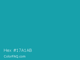 Hex #17a1ab Color is a normal cyan color and the nearest color is Eastern Blue #1e9ab0. Hex code #17a1ab and RGB value is rgb(23,161,171). In RGB color space, this color is composed of 9% red, 63% green, 67% blue, In CMYK color space, this color is composed of 87% cyan, 6% magenta, 0% yellow , 33% black , In HSL color space, this color has a hue angle of 184° , 76% saturation and 38% lightness.