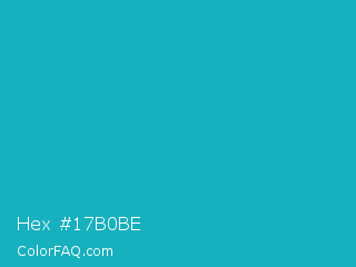 Hex #17b0be Color is a normal cyan color and the nearest color is Pacific Blue #1ca9c9. Hex code #17b0be and RGB value is rgb(23,176,190). In RGB color space, this color is composed of 9% red, 69% green, 75% blue, In CMYK color space, this color is composed of 88% cyan, 7% magenta, 0% yellow , 25% black , In HSL color space, this color has a hue angle of 185° , 78% saturation and 42% lightness.