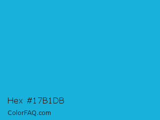 Hex #17b1db Color is a normal cyan color and the nearest color is Battery Charged Blue #1dacd6. Hex code #17b1db and RGB value is rgb(23,177,219). In RGB color space, this color is composed of 9% red, 69% green, 86% blue, In CMYK color space, this color is composed of 89% cyan, 19% magenta, 0% yellow , 14% black , In HSL color space, this color has a hue angle of 193° , 81% saturation and 47% lightness.
